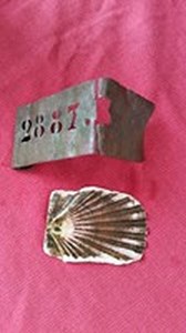 Oui, il y'a des chances que ce soit une plaque signalétique du chemin de St-Jacques de Compostelle.