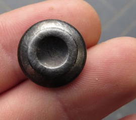 J'avais également pensé sur le coup à sa sortie de terre à un élément style œillet ou clip de bâche agricole ou quelque chose du même genre, mais je reste sceptique. Le métal me fait penser à de l'argent patiné..Pour info l'objet pèse environ 2,5grs.