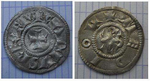 [1817] Une trouvaille superbe et rare. Je connais 39 trouvailles isolées de ces deniers de Milan, mais si je donne la liste - Alrø (DK), Altötting (DE), Rinnegom (NL), Bernheze (NL), Brescia (IT), Bressanone (IT), Zoelen (NL), Burgheim (DE), Buurmalsen (NL), Castelfondo (IT), Dahlenwarsleben (DE), Domburg (NL), Achlum (NL), Friesland (NL), Gruitrode (BE), Harmelen (NL), Katwijk (NL), Kerkrade (NL), Koper (SLO), Kortessem (BE), Luni (IT), Mainz (DE), Marlenheim (FR), Nord-Isère (FR), Saint-Jean-de-Maurienne (FR), Torcello (IT), Westland (NL), Hippolytushoef (NL), Wijk bij Duurstede (NL - 10), Woodnesborough (GB) - tu verras que ces monnaies sont très rares en France. En effet – il n’y a que trois trouvailles : Marlenheim (Bas-Rhin), Nord-Isère, Saint-Jean-de-Maurienne (Savoie). Et je ne connais aucun trésor français qui contenait un denier pareil. Il serait donc très utile pour mes recherches de savoir où il était trouvé (et le tien aussi, Erstein !).