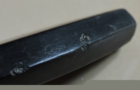 aucune trace de cassure , juste la patine qui a sauté un petit peu sur les extrémités,,,je joints une tite photo,,, merci de ton passage