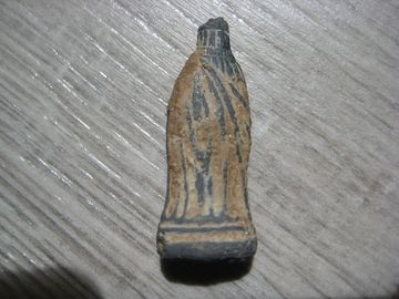 En fait et pour ne pas influencer les chercheurs je n'ai pas dis que j'avais trouvé cette petite statuette en bordure du GR65,le chemin du Puy en Velay menant à St Jacques de Compostelle et qui traverse ma propriété en Béarn.
