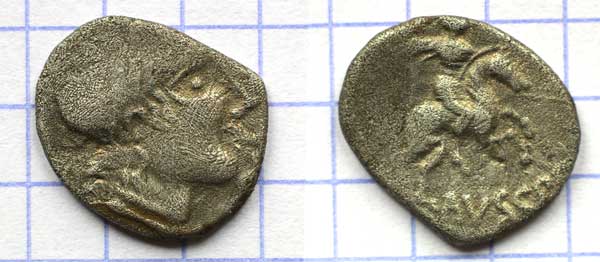 denier de la vallée du Rhône -75 av JC. relativement courant comme trouvaille.
