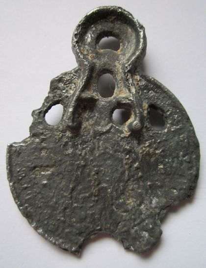 Car il n'y a aucune trace d'usure dans le trou d'accroche (c'est un métal tendre) ou alors il était attaché avec une lanière.