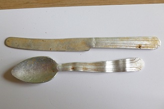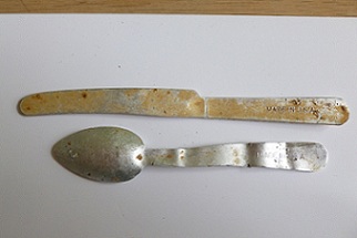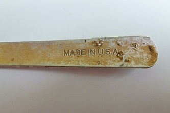 , a tous, j' ai trouvé cette petite cuillère et ce couteau, il y a quelque jours, matière alu, dessus marqué made in usa, je pense a des jouets de dinette, pouvez vous m' aider a identifier ces jouets et a les datés, longueur 11 cms, merci a tous pour les infos, bonne journée.