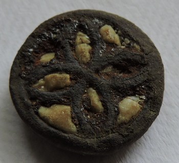 Comme ca je dirais bouton de col(ce qui expliquerai le gros arrachement à l'arrière).Pour la datation et uniquement si mon identification apparait plausible je dirais XIX.