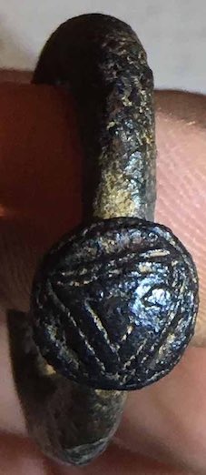 voici une jolie petite photo dun bouton de fourreau ADB avec un triangle en décoration. alors cette, cela s'approche plus d'un triskel mais on est pas loin je trouve... a première vue j'aurais dis sans hésiter ADB ou GR, mais vous me mettez le doute les amis