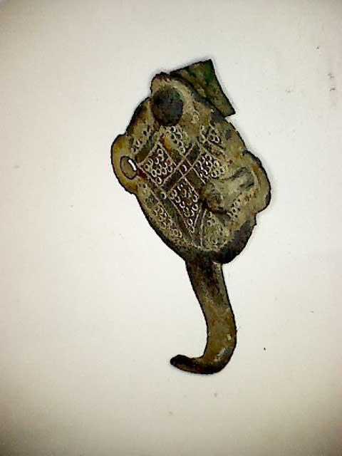 jolie objet en forme de crochet avec motif sur partie haute.3 clous de fixation(photo) .