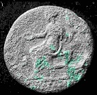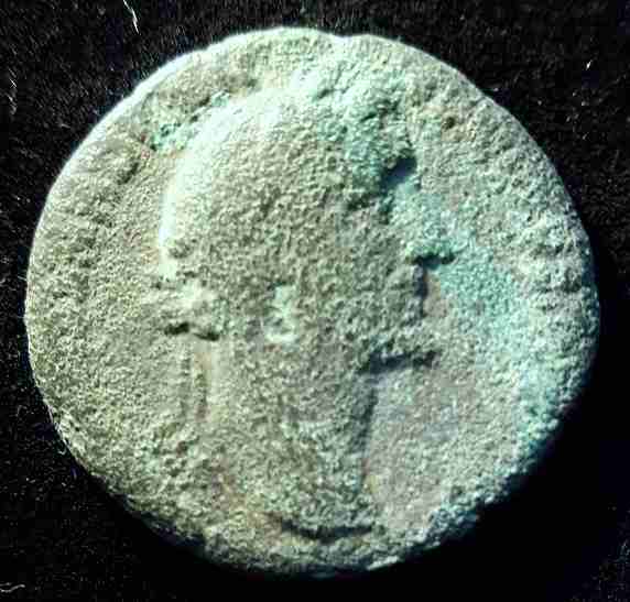 Encore une romaine bien lessivée trouvée dans les labours du 26 cet hiver. Diamètre 25 mm,patine inexistante.Merci de m'en dire plus si possible.