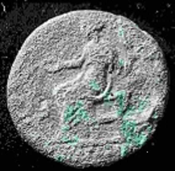 l'image du revers n'est pas lisible soit Pietas la Pitié , soit Iustitia (la Justice )assise à gauche tenant une patère