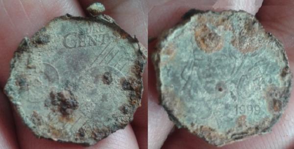J'ai même trouvé une dizaine de pièces de un euro, depuis que je prospecte, qui sont en sale état également ! Et ce en terre seulement.