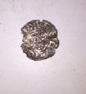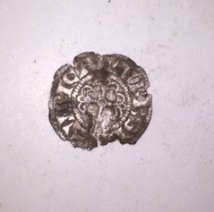 Je pense à une médiévale en argent. Très fine, je n'ai pas le poids, mais mesure 2 cm de diamètre. Il me semble voir un personnage de face, portant un chapeau (pape peut être) et arborant une moustache. Au recto une croix surmontée de lys peut être. Merci pour votre intéressement à la découverte de cette monnaie.