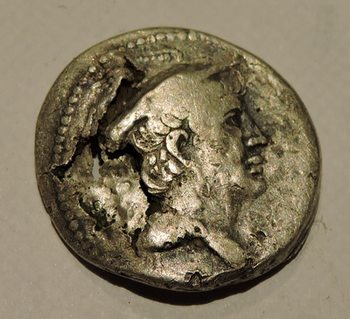 Denier de MAMILIA date 82 AC. , mais comme il est fourré et d'un poids inférieur (pèse en principe 3,86 grammes) est il authentique , je ne sais pas , j'ai de gros doutes en tout cas