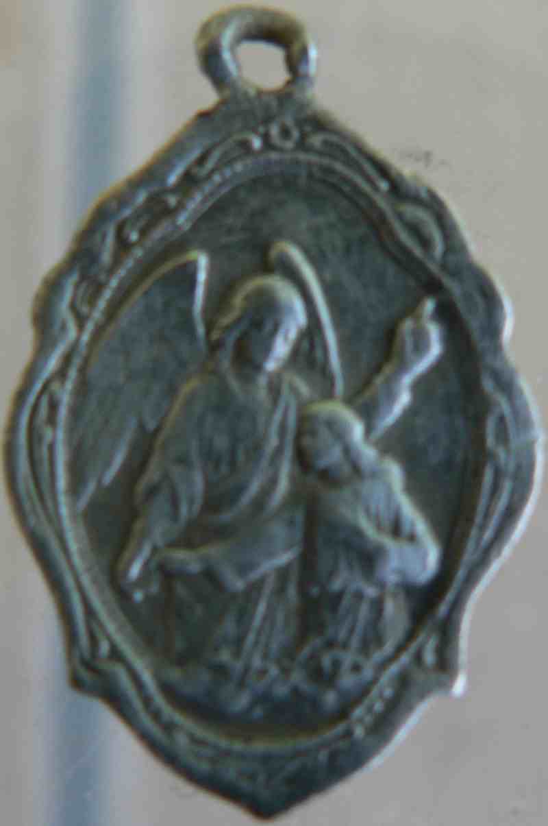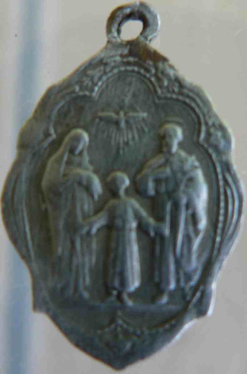 médaille du XIX e siècle représentant en RO la Sainte Famille , surmontée de la colombe de la paix et en R1 l'ange gardien