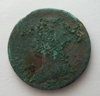 Je vous soumets cette monnaie bien fatiguée trouvée en forêt. Son diamètre (très régulier) est de 30 mm. Elle ne me paraît pas très ancienne mais difficile à identifier avec certitude car les gravures sont très effacées et il y a des concrétions que je ne parviens pas à ôter ...
