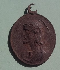 Je viens vers vous pour essayer d'avoir quelques informations sur cette médaille religieuse en cuivre de dimensions au plus large de 23 mm par 20 mm.