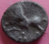 Je n'ai pas trouvé de monnaie identique mais je trouve que ce quinaire à un air de ressemblance avec certaines monnaies des Leuques notamment les deniers solima Colima au cheval au galop , mais aucun avec ces trois globules sous le cheval , une telle position de ces trois globules formant un triangle , je ne l'ai retrouvé que sur les statÚres 'type de Morville ' attribués aux Leuques et ou médiomatrices