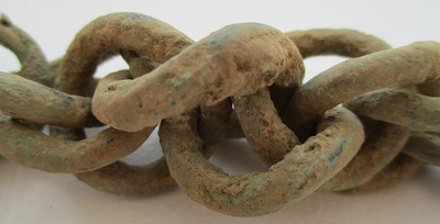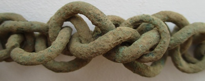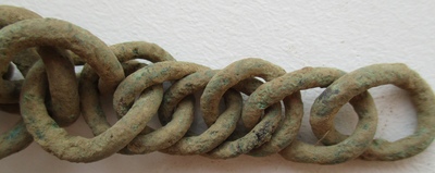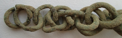 Il s'agit d'une chaîne d'anneaux, les plus petits comme vous pouvez le voir se trouvent aux extrémités et les grands au centre?! Certain sont tordu, naturellement ou pas?