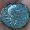 je vous communique les dimensions et le poids : 18 à 20 mm de diamètre et 3,1 g pour le poids... Il semblerait que ce soit de l'argent mais nous n'en sommes pas certains...