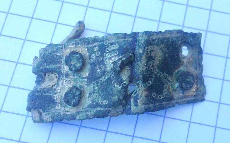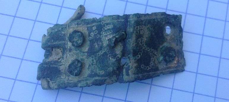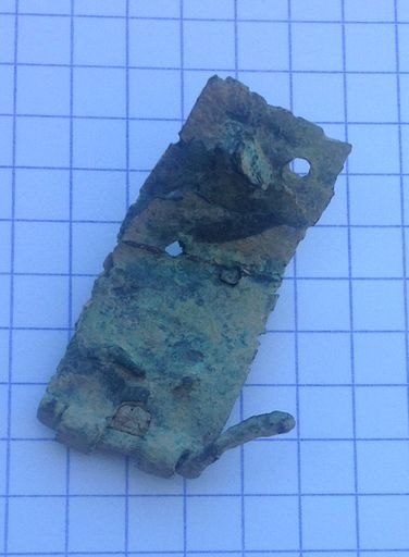 Vent d'autant, jolie chape de boucle médiévale avec reste de boucle.