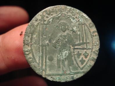 Ce type est souvent classé avec les jetons au roi debout alors qu'il s'agit bien d'un type différent sur lequel le personnage (qui n'est pas couronné) tient un écu fleurdelisé...Ce type prend pour modèle l'ange d'or de Philippe VI de Valois...