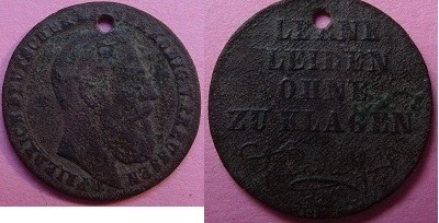 J'ai trouvé ce petit médaillon en cuivre (16 mm )en forêt du 67 .