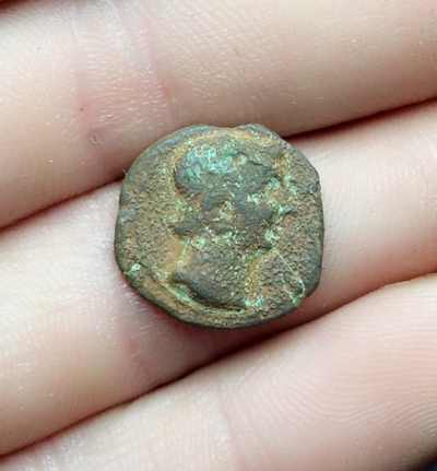bonjour a tous voici une petite romaine je pense , en bronze de 1.7 cm de diamètre