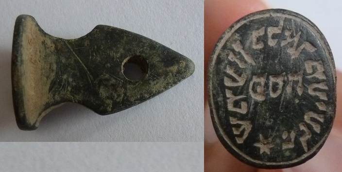 Voici un joli sceau juif de 25 mm de long . La matrice fait 12 mm x 15 mm. Trouvé dans le Bas Rhin.