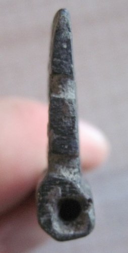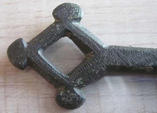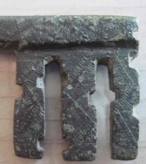 Sur ta photo générale, je n'avais pas remarqué tous ces petits traits incisés rangés de sorte à dessiner des chevrons ; travail qui ne semble pas réalisé à la molette, mais à la main... Bravo Laquich c'est vraiment une clef magnifique ! XIII ème - XIV ème siècles pour la datation.