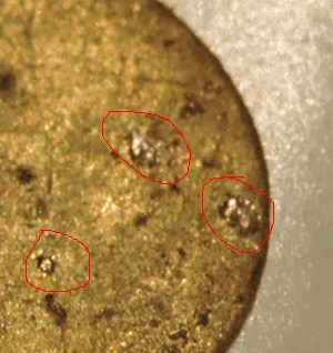 tant que je n avais pas de confirmation de la nature du métal , je ne m y interressais pas trop , mais ce soir ,je vais la passer a la bino , histoire de voir si il n y aurait pas un reste de quelque chose,,,,,