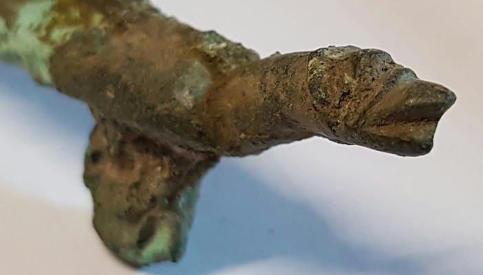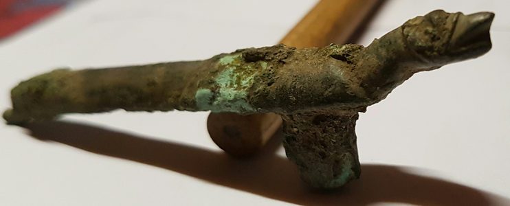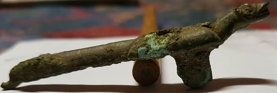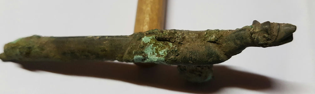 Trouvées par mon fiston et moi , une fibule zoomorphe entière et le même modèle avec seulement la tête . Département de l'aube .