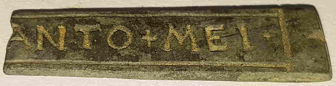 Beaucoup de choses qui m'intriguent , dont cet objet en bronze avec des lettres gravées .