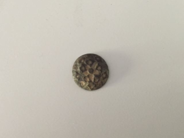 Je vous soumets aujourd'hui un petit bouton de 1 cm de diamètre en cuivre. Il est légèrement bombé.