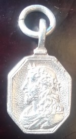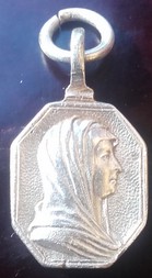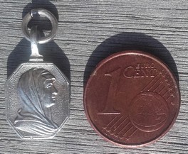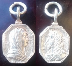 Jolie médaille 17eme début 18eme ( deux périodes peuvent se chevaucher) qui aurait pu être portée par un enfant? Ou être épinglée sur un vêtement . J'ai un ami très croyant, hélas disparu qui portait une petite médaille de Marie sur son Marcel, puis une chemise par dessus