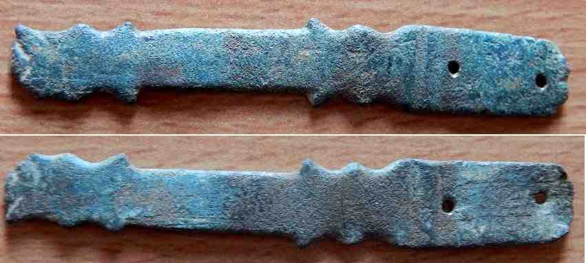 et j'ai l' impression que le bout manquant est identique au morceaux qui est percé de 2 trous ( les dessins/marquages sont ressemblants ) !