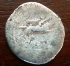 Après plusieurs jours de recherche je pense que c'est un denier calpurnia , avec un buste d'apollon à droite , et un cavalier au galop à droite sur le revers.