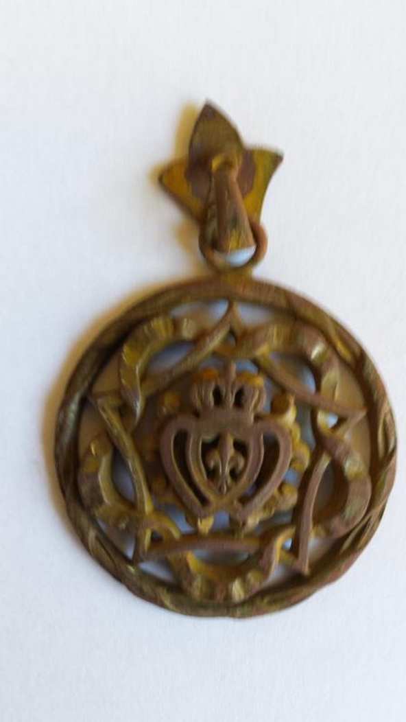 Double coeur couronné et fleur de lys, nous sommes en présence d'un symbole royaliste vendéen qui avait cours durant la seconde moitié du XIX eme, si j'en crois mes recherches.