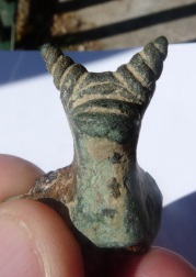 Ton objet est-il cassé ? Peut-être que c'est un ancien manche de clé, la forme me fait pensé à une tête d'un animal avec des cornes.