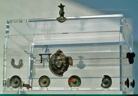 Ça me fait penser à une applique décorative qu'il y avait sur certains coffre gallo romains.