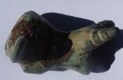 figurine en forme d'escargot ou il lui manque la carapace qui elle même devait être dans