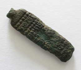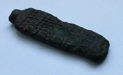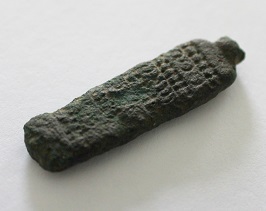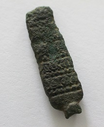 Poids: 11.7gr matière: bronze longueur: 4cm. Le revers est lisse, 'l'attache' si s'en est une, est cassé.