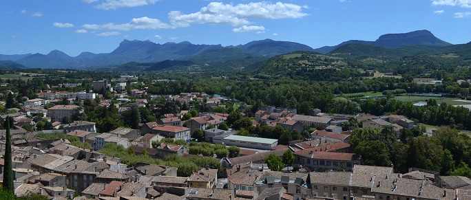 Par rapport à la photo, je suis au pied de la colline, coté gauche qui se présente avant la raille (montagne), de l'autre coté de la Drôme