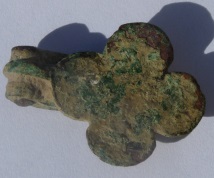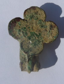 J'ai l'impression que nous sommes en présence d'un tres joli pendant de harnais, avec sa platine de suspension repliée dessous. Pour la datation je n'y connais rien, mais j'oserais avancer un XIII-XIV sans certitude en attendant d'autres avis.