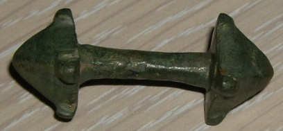 ton objet me fait penser à certains boutons gaulois ,chaque bout se glissait dans une boutonnière .Il en existe pas mal sur le web ,certains à tête de sanglier ou ajouré comme l'exemple ci dessous.
