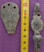 à gauche c'est un morceau d'agrafe de châtelaine, voir la même en bas du post