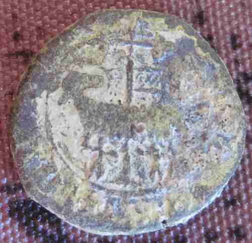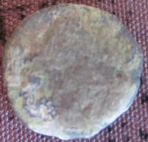 Voici une piécette mais je n'en suis pas sur, elle est super fragile car quand je gratte le reste de terre la partie métallique par avec alors j'ai stoppé le nettoyage.