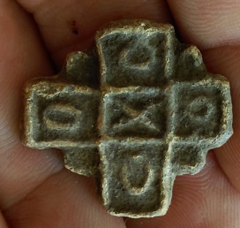 De forme de croix il est en plomb et supporte un partie rouillée sur l'arrière ;