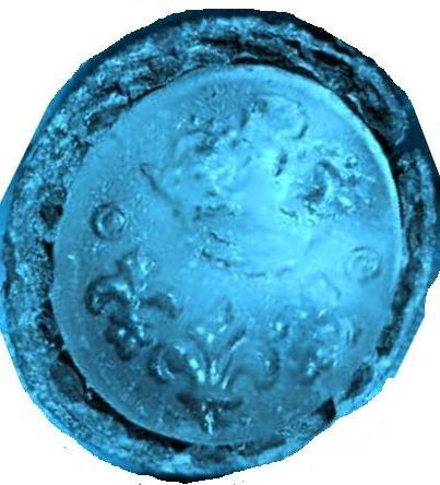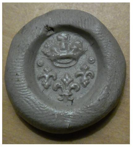 Ouais, j'y avais pensé à un sceau. Mais les fleurs de lys me font dire que un sceau royale serait de meilleure facture. Mais bonne suggestion.