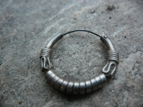 Je crois reconnaitre là une boucle d'importation indienne,pour en avoir vendu pendant quelques années,ce petit travail de fil d'argent torsadé est typique!