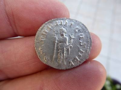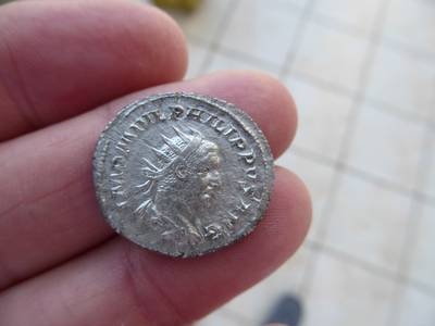 Jolie romaine trouvé dans un champ en Charente (16) , diamètre 23mm pour un poids de 3,49grs, je pense qu'il s'agit d'prés mes recherches sur internet de l'Empereur Philippe 1er l'arabe 244/249, R/ LA FELICITE .