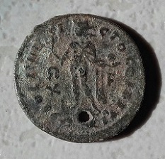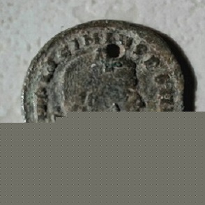 Dans le même champ que le pendentif ce petit Licinius qui a du servir de pendentif à l'époque mérovingienne car percé ! Si quelqu'un pouvait éventuellement me donner son pédigrée ! Avec mes remerciements Théo.